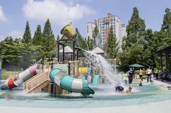 각 물놀이장에는 물 분사 터널, 워터 슬라이드, 풀장 등 다양한 시설이 마련되어 있으며, 수심이 얕아 유아들도 안전하게 이용할 수 있다. 공원 내에는 휴게쉼터, 탈의실 등 편의시설도 갖춰져 있어 온 가족이 함께 즐기기에 제격이다.