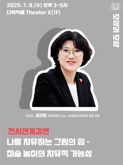 이번 강연은 2025년 어린이 기획전시 《모양과 모양》의 연계 프로그램으로, 미술치료 분야의 세계적 권위자인 김선현 교수(제주대학교)가 강연자로 나선다.