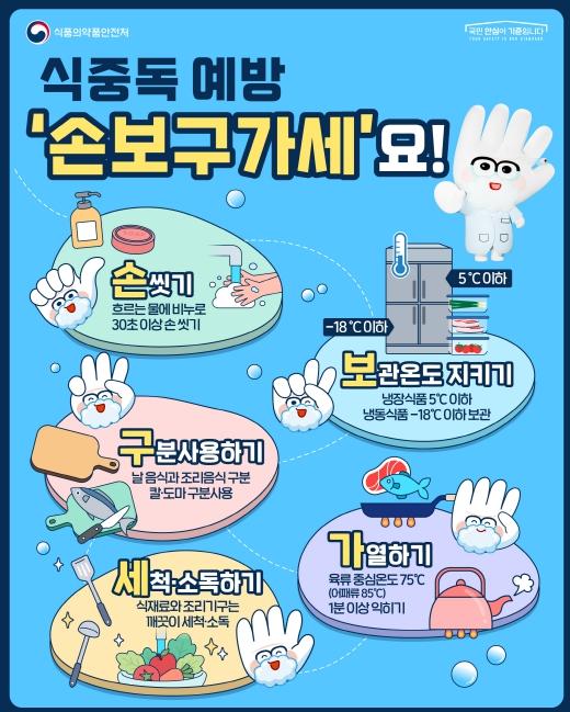 시민들이 식중독 예방 수칙을 쉽게 기억하고 실천할 수 있도록 ‘손보구가세(손씻기, 보관, 구분, 가열, 세척·소독)로 예방교육 및 홍보를 실시한다.