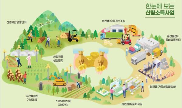▲토양개량제·유기질비료를 지원하는 ‘친환경 임산물 재배관리’ ▲임산물 생산에 필요한 기반을 조성하는 ‘임산물 생산단지 규모화’ ▲임산물 생산 관련 기계·장비를 지원하는 ‘임산물 생산기반조성 등이다.