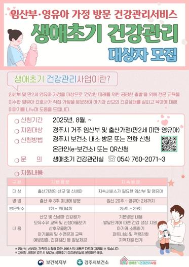 이번 사업은 보건복지부 주관 ‘2025년도 생애초기 건강관리 공모사업’에 경주시가 선정되면서 추진되는 것으로, 지난 3월부터 체계적인 준비 과정을 거쳐 본격 운영에 돌입했다.