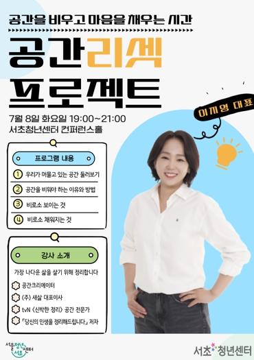 첫 강연은 오는 8일 오후 7시, tvN ‘신박한 정리’로 잘 알려진 이지영 ㈜새삶 대표가 진행하는 ‘공간 리셋 프로젝트’로 시작된다. 청년들이 스스로의 공간을 가꿀 수 있도록 돕고, 단순한 정리를 넘어 마음을 정돈하는 공간 관리법을 제시한다.