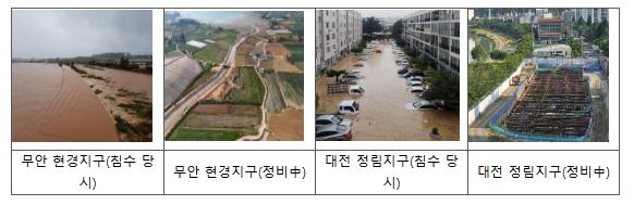 전남 무안 현경지구(’21년~)는 준공 시기를 당초 2026년에서 올해 12월로 앞당겨, 하천제방 유실 등 위험으로부터 주민 140여 명을 보호하고,대전 서림 정림지구(’21년~)는 배수펌프장 완공 시기를 6개월 앞당겨 내년 우기 전에 조기 완료함으로써, 집중호우에 선제적으로 대응할 계획이다.