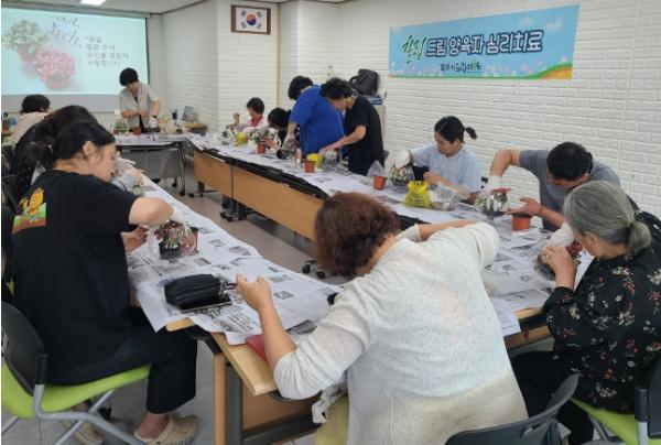 원예치료는 꽃 장식과 공기정화 식물 심기 등 자연과 교감하는 활동으로 진행됐으며, 다육식물을 이해하고 돌보는 과정, 투명 용기를 활용한 미니 정원 꾸미기 등 창의적인 체험도 병행됐다.