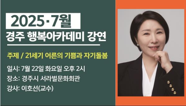 이호선 교수와 함께하는 자기돌봄 이야기”…경주행복아카데미 7월 강연 개최