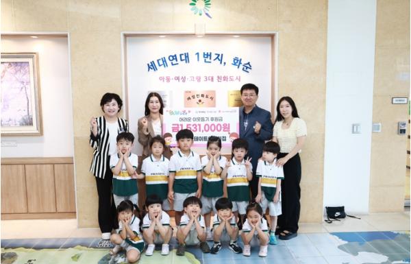 [한국제일신문, 김성옥기자] 화순군은 이른 폭염이 기승을 부리는 가운데, 지난 3일 화순현대힐스테이트 어린이집을 시작으로 4일 화순한양립스, 화순나라어린이집과 연달아 원내 행사 수익금 기탁식을 가졌다고 밝혔다.