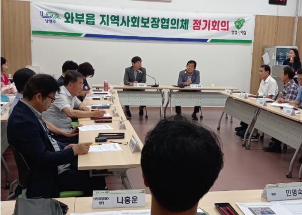 이날 회의에는 곽용환 와부읍장을 비롯해 협의체 위원, 남부희망케어센터 관계자, 복지공무원 등 30여 명이 참석해 경기도 간병 SOS 사업 홍보, 건강한 여름나기 꾸러미 지원, 협의체 특화사업 추진 등을 논의했다.