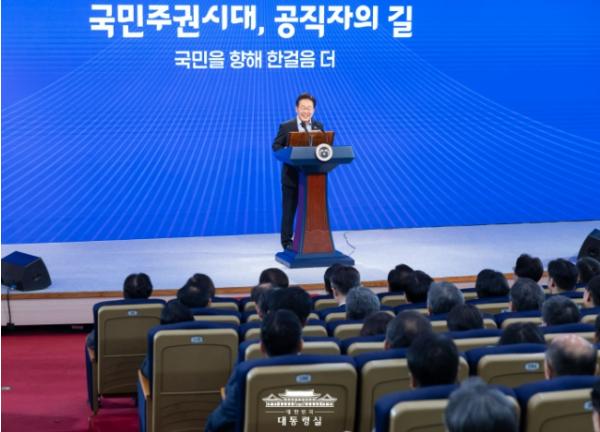 또한 이 대통령은 "공직자의 권력은 국민에게서 나오고 우리가 쓰는 예산도 국민이 낸 세금"이라면서 "공무원들의 사고를 채워주는 건 국민의 뜻이자 의지여야 한다"는 말로 공직자의 지향점이 주권자인 국민에게 있음을 강조했다.