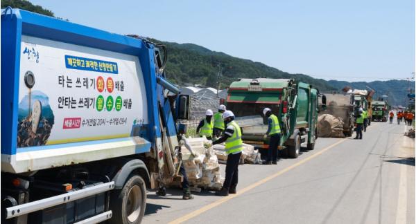 하지만 이날 25명의 환경미화원들은 청소차 7대를 동원해 군민 일상 회복을 위해 휴식 시간을 반납하고 폐기물 수거에 구슬땀을 흘렸다.