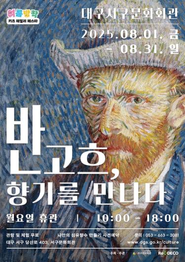 서구문화회관(관장 하현주)은 여름방학을 맞아 전시 체험전인‘반고흐, 향기를 만나다’전(展)을 8월 1일부터 8월 31일까지 8월 한 달간 서구문화회관 전시실 및 로비에서 개최된다.