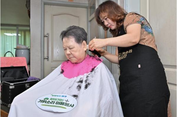 ‘가위소리 미용봉사’는 거동이 불편한 어르신과 요양시설 입소 어르신들을 직접 찾아가 머리를 손질해드리는 생활밀착형 착한정책이다.