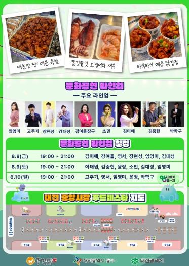 ‘중앙시장 푸드페스타’는 대전 대표 축제인 ‘대전 0시축제’와 연계해 진행되는 행사로, 전통시장을 찾는 시민과 관광객에게 대전만의 맛과 정취, 그리고 이색적인 야간 콘텐츠를 선사할 예정이다.