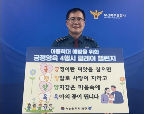 [한국제일신문, 김성옥기자] 부산 북구는 지난 5일, 아동학대 예방을 위한 ‘긍정양육 4행시’ 릴레이 챌린지에 부산북부경찰서 박상욱 서장이 동참했다고 밝혔다.