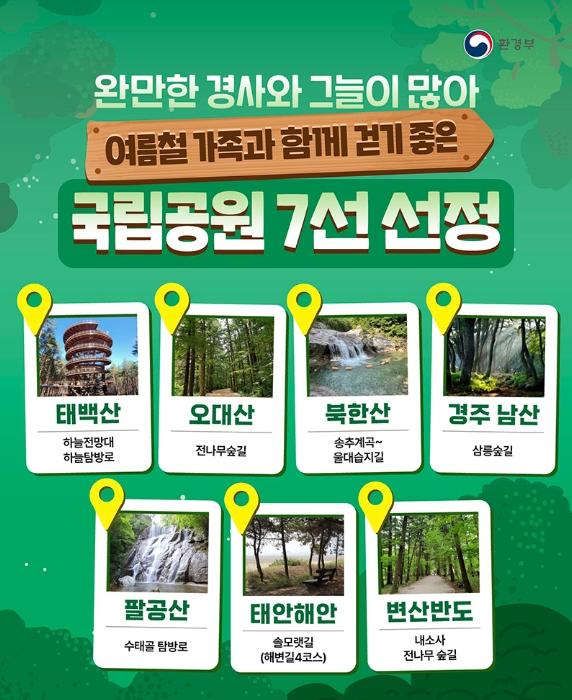 환경부, 완만한 경사에 그늘 많은 국립공원 7선