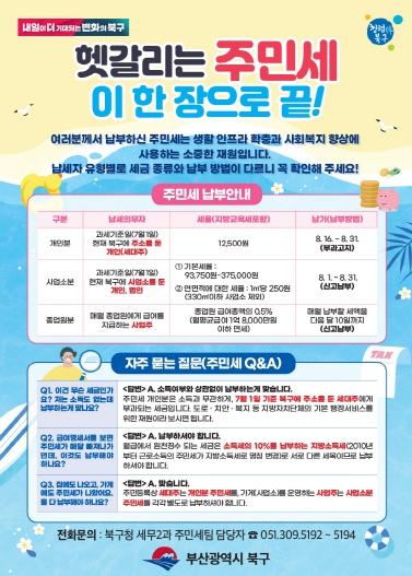 부산 북구, “8월은 주민세 납부의 달”... 헷갈리는 주민세, 적극 홍보 나서