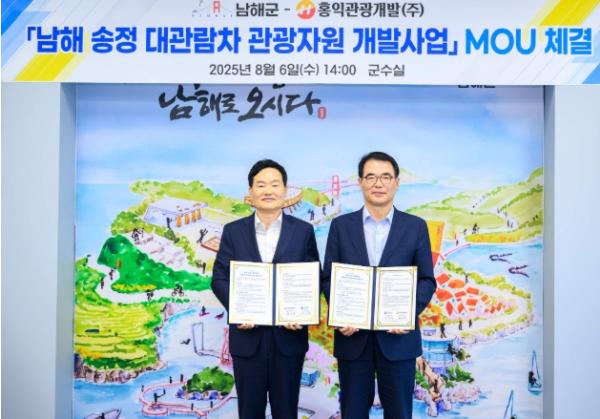 이번 협약에 따라 남해군은 인허가 등 제반 행정절차를 적극 지원하고, 홍익 관광개발㈜은 대관람차 및 부대시설 건설에 필요한 사업비와 제반 경비를 전액 투자할 계획이다.