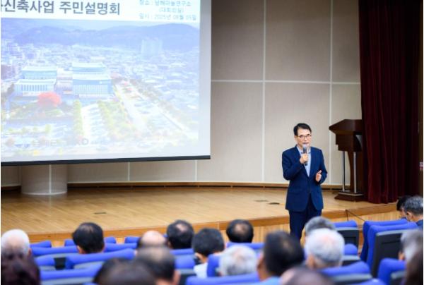 [한국제일신문, 김성옥기자] 남해군은 5일 남해마늘연구소 2층 대회의실에서 ‘남해군 청사신축 사업 군민설명회’를 개최하고, 본격적인 공사에 앞서 사업 추진 현황과 향후 계획을 군민들에게 설명하는 자리를 마련했다.