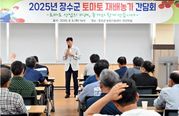 최훈식 군수는 “바쁜 와중에도 장수군 토마토 농업 발전을 위해 간담회에 참석해주셔서 진심으로 감사하다”며 “이번 간담회를 통해 농가들의 현실적인 어려움을 보다 구체적으로 파악할 수 있어 의미 있는 시간이었다”고 말했다.