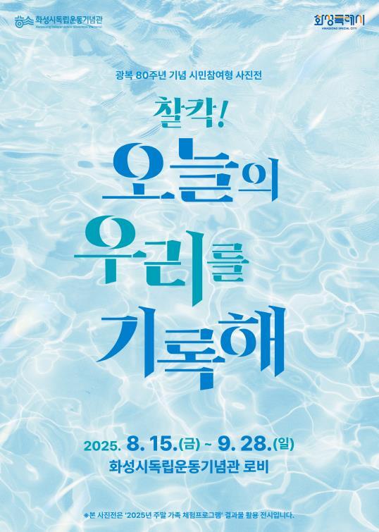 [한국제일신문, 김성옥기자] 화성특례시가 오는 15일부터 9월 28일까지 화성시독립운동기념관 로비에서 광복 80주년 기념 시민 참여형 사진전 ‘찰칵! 우리의 오늘을 기록해’를 개최한다.