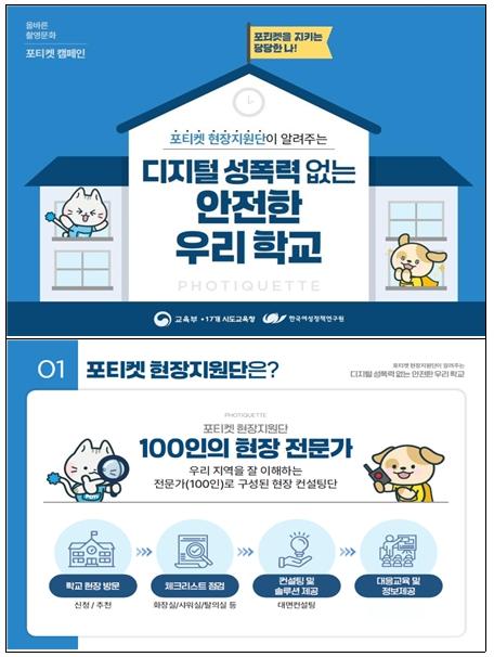 [한국제일신문, 김성옥기자] 교육부와 한국여성정책연구원은 학교 내 불법촬영 및 딥페이크 성범죄 등 디지털 성폭력을 예방하기 위해 환경개선 컨설팅과 예방교육을 결합한 ‘포티켓(포토+에티켓) 현장지원단’을 운영하고 있다.