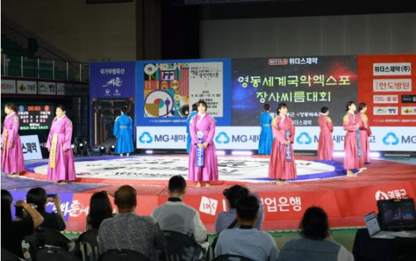 정영철 영동군수는 “이번 대회를 위해 우리 영동을 방문해 주신 대한씨름협회와 전국 씨름 팬 여러분께 깊은 감사를 드리며, 앞으로도 씨름과 국악과 같은 우리 민족 전통과 예향의 발전에 영동군이 앞장설 수 있도록 최선을 다하겠다” 라며 “이번 9월 12일부터 한 달간 열리게 될 2025 영동세계국악엑스포에도 많은 관심과 참여를 바란다”라고 말했다.