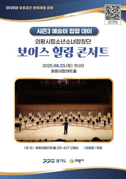 [한국제일신문, 심태선기자] 의왕시는 이번 달 23일 오후 3시, 왕림이팝아트홀(왕곡로 74) 공연장에서 『보이스 힐링 콘서트』를 개최한다.