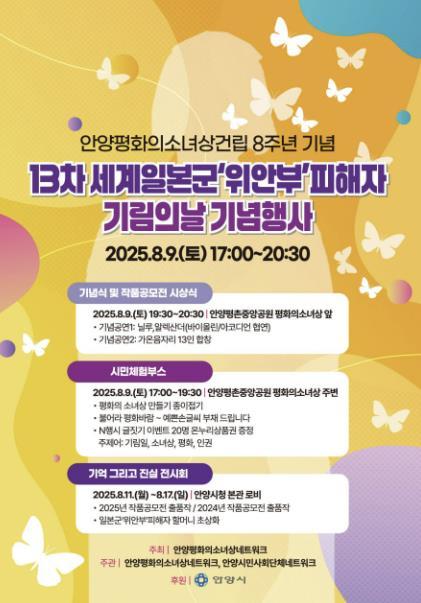 안양평화의소녀상네트워크는 위안부 피해자들의 아픔을 기억하고, 평화와 인권의 가치를 되새기며, 시민들의 모금으로 만든 안양 평화의소녀상의 건립 8주년을 기념하는 행사를 기획했다.