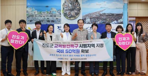 [한국제일신문, 김성옥기자] 진도군이 교육부에서 주관하는 ‘교육발전특구 시범지역’ 공모사업에 최종 선정되어 지방교육재정특별교부금 50억 원을 확보했으며, 맞춤형 교육사업과 학력 신장 사업을 본격 추진해 지역 교육의 경쟁력을 강화한다고 밝혔다.