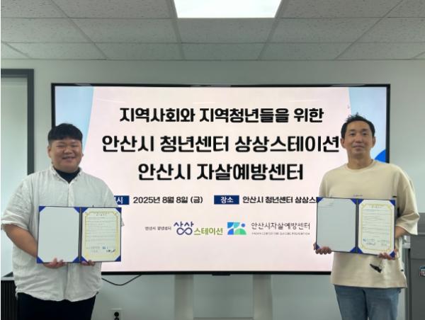 [한국제일신문, 김성옥기자] 안산시 자살예방센터는 지난 8일 안산시 청년센터 상상스테이션(센터장 전상혁)과 고립·은둔 청년을 위한 업무협약(MOU)을 체결했다고 11일 밝혔다.