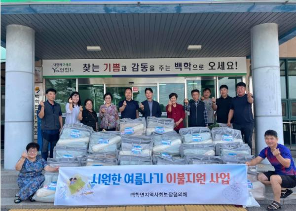 [한국제일신문, 김성옥기자] 연천군 백학면지역사회보장협의체는 지난 8일 여름철 무더위로 어려움을 겪는 취약계층을 위해 ‘시원한 여름나기-여름 이불 지원’ 사업을 진행했다.