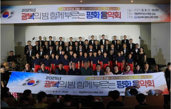 [한국제일신문, 김성옥기자] 경상북도봉화교육지원청은 지난 8월 9일 저녁 7시, 국립백두대간수목원 대강당에서 광복 80주년을 기념하는 『광복의 밤, 함께 부르는 평화』 음악회를 개최했다. ‘세대가 어우러진 울림, 미래를 노래하다’라는 부제 아래 열린 이번 음악회는 예술을 매개로 광복의 의미와 평화의 가치를 되새기며, 세대와 지역이 함께 만들어낸 감동의 무대였다.