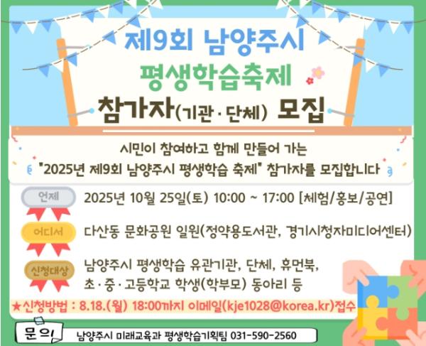 남양주시, 2025년 제9회 평생학습축제 참가자 모집