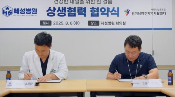 정승효 혜성병원장은 “이번 협약이 지역 주민들의 건강한 삶을 위한 실질적인 지원의 기반이 되길 바란다”며 “앞으로도 지역사회와의 연계를 통해 공공의료의 역할을 성실히 수행하겠다”고 말했다.