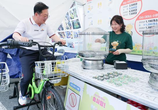[한국제일신문, 김정수기자] 공영자전거 타슈를 이용한 이색 체험 부스가 ‘2025 대전 0시 축제’에 등장하며 화제다.