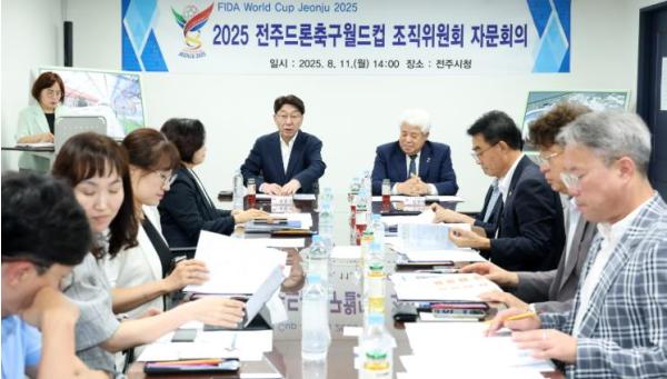 2025 전주드론축구월드컵 조직위원회는 11일 시청 3층 소회의실에서 오는 9월 개최되는 드론축구월드컵의 성공적인 개최를 위한 자문회의를 개최했다.