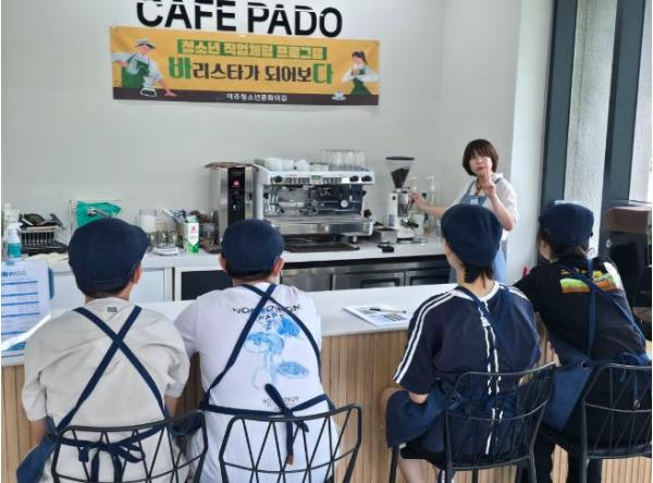 참여 청소년들은 문화의집 1층 카페 ‘파도’에서 커피를 직접 만들고 손님을 응대하며 실전 감각을 키웠다.