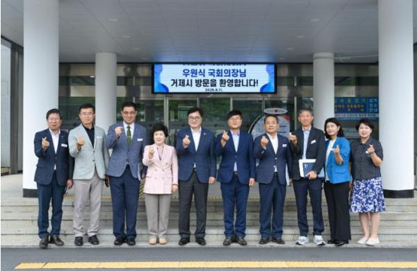 11일 오후 거제시청을 찾은 우 의장은 변광용 거제시장, 신금자 거제시의회의장을 비롯한 국·소장들과 지역현안 간담회를 가졌다.