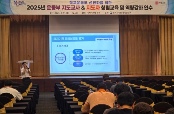 [한국제일신문, 김성옥기자] 경북교육청은 11일부터 12일까지 경주시에 있는 더케이호텔경주에서 도내 학교운동부 지도교사와 지도자 450여 명을 대상으로 ‘2025년 학교운동부 청렴교육 및 역량 강화 연수’를 진행한다고 밝혔다.
