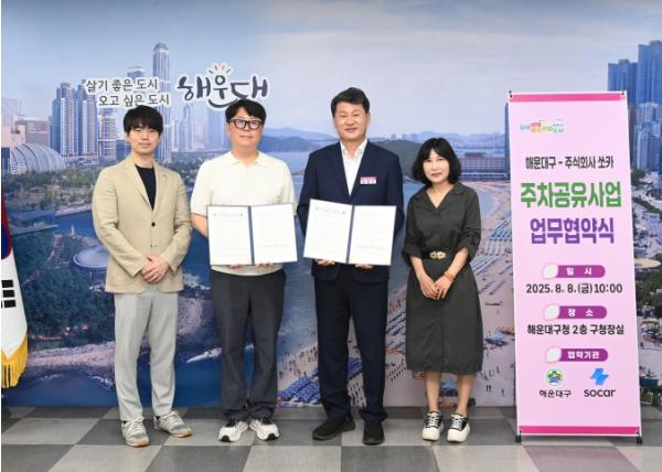[한국제일신문, 김성옥기자] 해운대구는 8일 국내 모빌리티 산업을 선도하는 ㈜쏘카와 주차공유사업을 위한 업무협약을 체결했다.