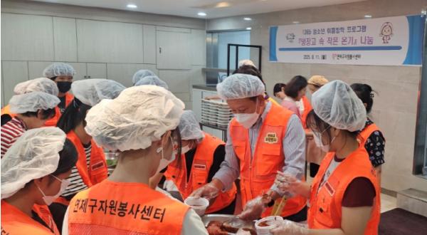 [한국제일신문, 김성옥기자] 연제구는 8월 11일 브니엘교회 공유주방에서 연제구자원봉사센터(센터장 반성룡) 주관으로 청소년 자원봉사자 10여 명과 반찬을 만들어 동 행정복지센터 공유냉장고에 기부를 하는 '냉장고 속 작은 온기' 봉사활동을 실시했다.
