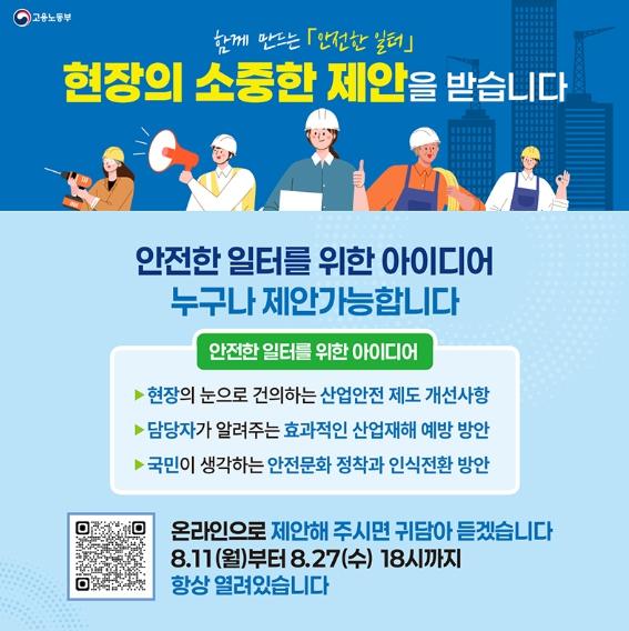 고용노동부, 함께 만드는 '안전한 일터' 아이디어 제안
