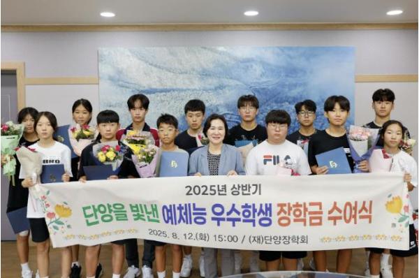 (재)단양장학회는 지난 12일 2025년 상반기 ‘단양을 빛낸 예체능 우수학생’ 장학금 수여식을 개최했다.