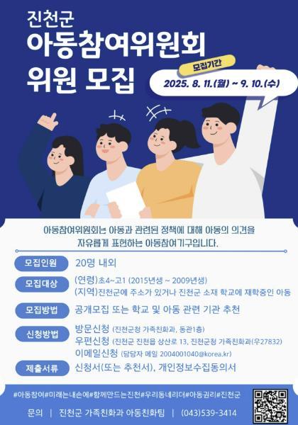진천군, 제3기 아동 권리 보장을 위한 아동 참여위원 모집