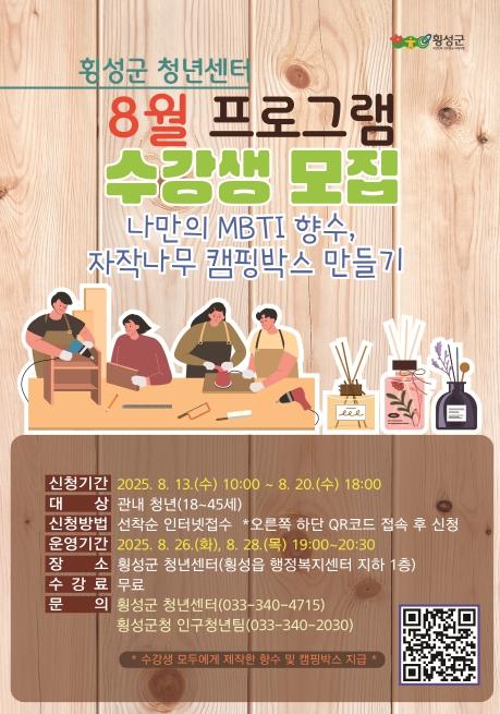 횡성군 청년센터 8월 프로그램 수강생 모집