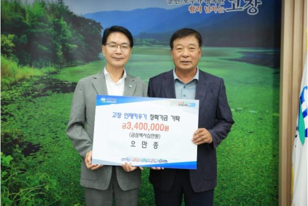 오만종 고창군 블루베리연합회장, 장학금 340만원 기탁