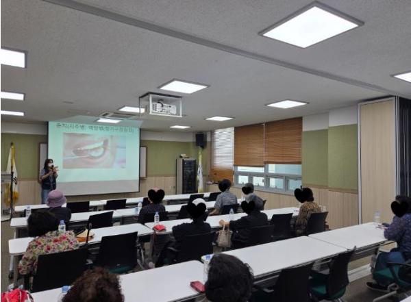 교육 내용은 ▲치주질환, 치아우식 예방을 위한 올바른 구강 관리 방법 ▲구강건조증 예방을 위한 입체조 방법 ▲틀니, 임플란트 등 구강 내 보철 관리방법 ▲정부 지원사업 및 보건소 이용 안내 등으로 구성됐다.