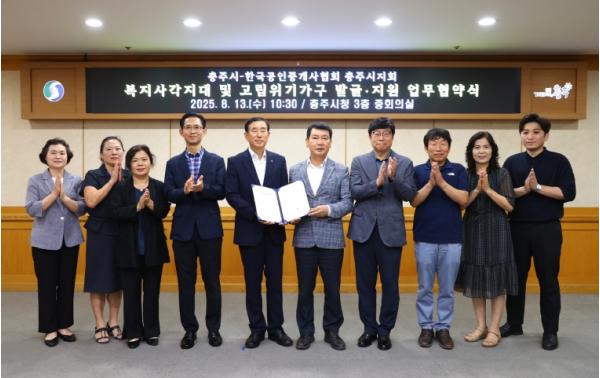 시는 13일 시청에서 한국공인중개사협회 충주시지회(회장 이홍규)와 복지사각지대 및 고립위기가구 발굴·지원을 위한 업무협약을 체결하고 촘촘한 지역 복지안전망 구축에 힘을 모으기로 했다.