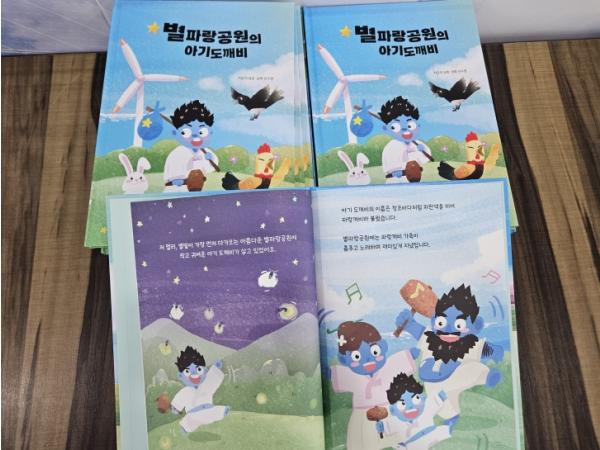 이번 동화책은 별파랑공원의 ‘파랑깨비 오두막집’에 사는 아기도깨비의 모험을 그린 것으로, 달토끼체험장, 바람정원 등의 다양한 소재를 담아 가족의 소중함을 느낄 수 있도록 창작됐다. 대상은 4~5세 아동이며, 글씨체는 자체 개발한 영덕해파랑체를 사용했다.
