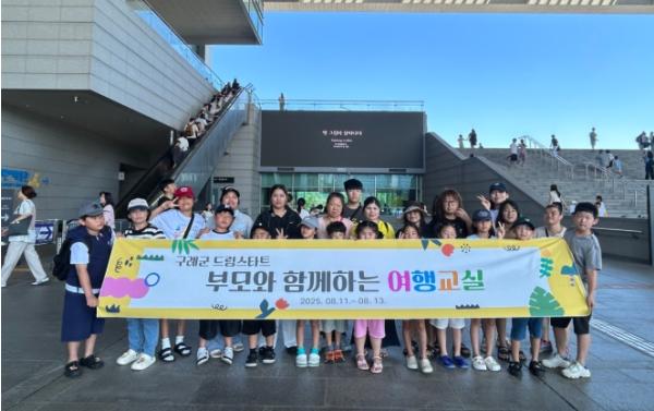 [한국제일신문, 김성옥기자] 전남 구례군은 지난 8월 11일부터 13일까지 드림스타트 부모와 아동 25명을 대상으로 ‘부모와 함께하는 여행교실’프로그램을 진행했다고 밝혔다.