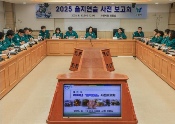 [한국제일신문, 김성옥기자] 과천시는 13일 시청 상황실에서 신계용 과천시장 주재로 ‘2025년 을지연습 사전 보고회’를 개최했다. 이날 보고회에는 과천시 관계 부서장 등 30여 명이 참석했다.